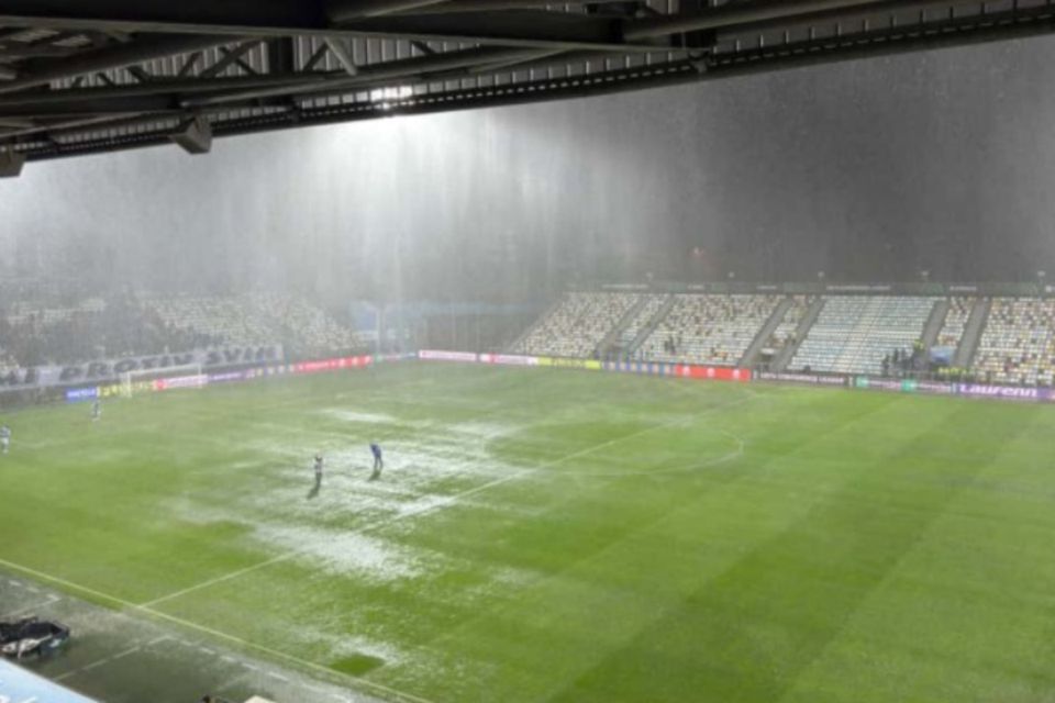 Συγκεκριμένα, στην κροατική πόλη υπήρχε έντονη βροχόπτωση και ισχυροί άνεμοι, αλλά το παιχνίδι ξεκίνησε κανονικά. Μάλιστα η Ριέκα σκόραρε κιόλας στο Φρουκ, αλλά το γκολ ακυρώθηκε για οφσάιντ.