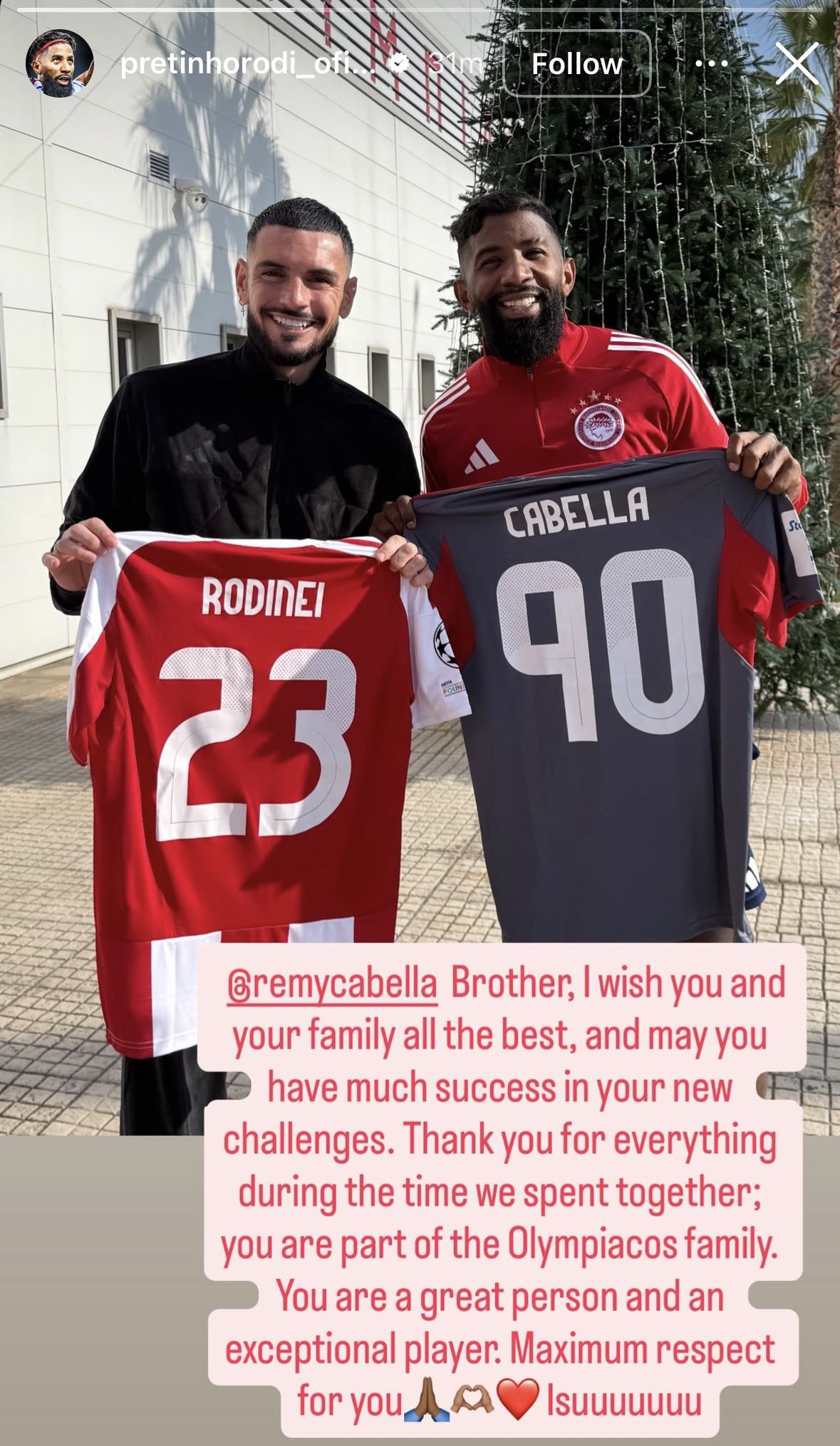 Ο Ροντινέι αποχαιρέτησε τον Καμπελά, μέσω story στον προσωπικό του λογαριασμό στο Instagram.