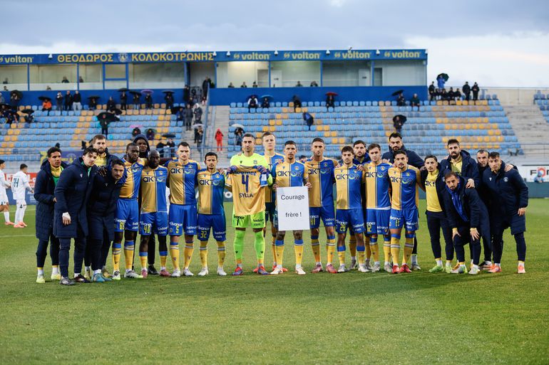 Πριν από το πρώτο σφύριγμα, οι ποδοσφαιριστές της ομάδας της Τρίπολης έστειλαν ένα ισχυρό μήνυμα αλληλεγγύης. Ο αρχηγός, Νίκος Παπαδόπουλος, κρατούσε συμβολικά μια φανέλα του Σιλά, ενώ ο Κώστας Τριανταφυλλόπουλος ύψωσε ένα πλακάτ με τη φράση «Κουράγιο αδερφέ» γραμμένη στα γαλλικά, τη μητρική γλώσσα του 31χρονου αμυντικού.