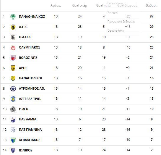 Με το που ολοκληρώθηκε η τελευταία αγωνιστική του πρώτου γύρου της Super League και οι διεθνείς ετοίμασαν βαλίτσες για Κατάρ, ο Παναθηναϊκός βρισκόταν στην κορυφή του βαθμολογικού πίνακα του ελληνικού πρωταθλήματος με 37 βαθμούς στο +12 από τον τρίτο ΠΑΟΚ των 7 νικών, 4 ισοπαλιών και 2 ηττών. Τώρα, οι «ασπρόμαυροι» βρίσκονται στο -9 από τους πρωτοπόρους «πράσινους».