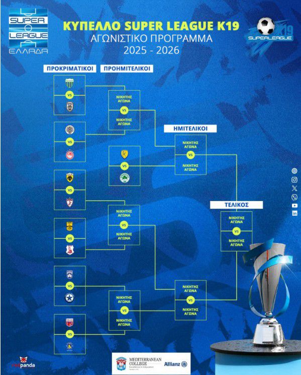 Η κλήρωση για το Κύπελλο της Super League Κ19 πραγματοποιήθηκε και μέσα από αυτή έγιναν γνωστά τα ζευγάρια. Δείτε το φορμάτ της διοργάνωσης.