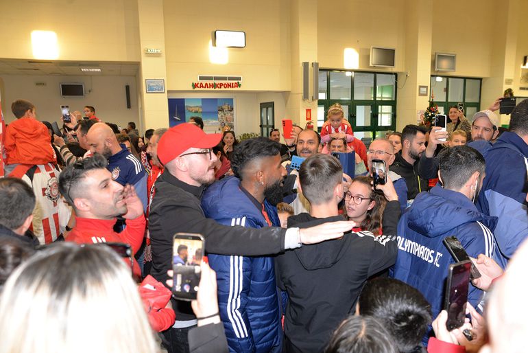Θερμή ήταν η υποδοχή που επιφύλαξαν οι φίλαθλοι του Ολυμπιακού στην αποστολή της ομάδας, η οποία αφίχθη στη Σύρο για την αναμέτρησή της στο πλαίσιο του Κυπέλλου Ελλάδος Betsson.