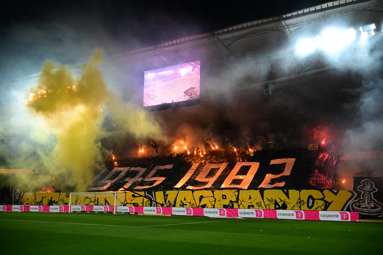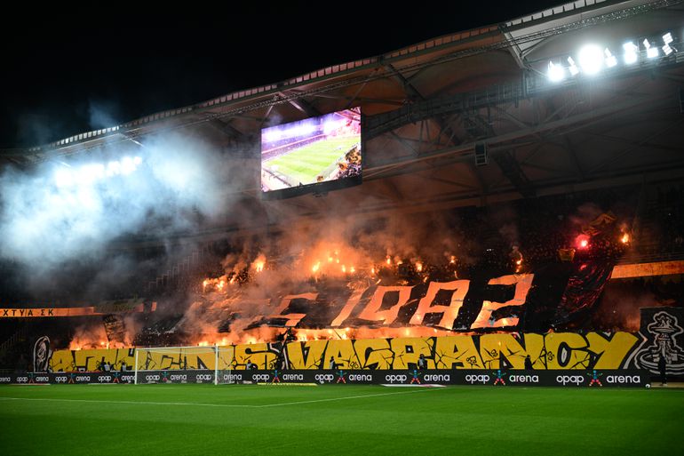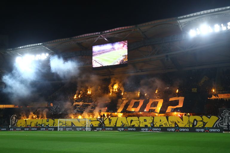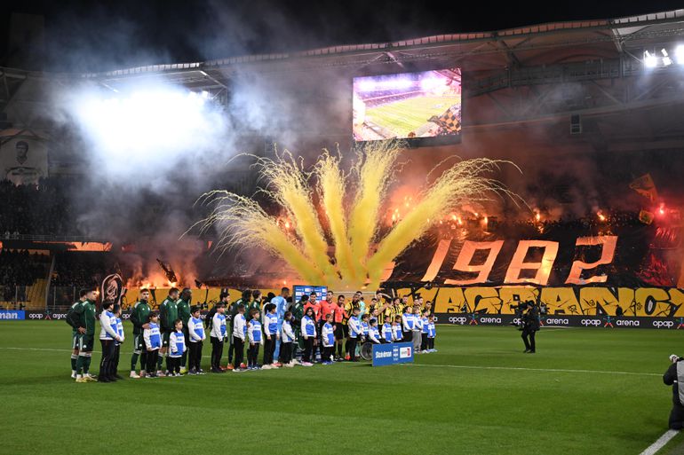 Μια εντυπωσιακή ατμόσφαιρα δημιούργησαν οι φίλοι της ΑΕΚ στην Opap Arena στο ματς με τον Παναθηναϊκό, υποδεχόμενοι τις δύο ομάδες με ένα φαντασμαγορικό pyroshow για την 17η αγωνιστική της Stoiximan Super League.