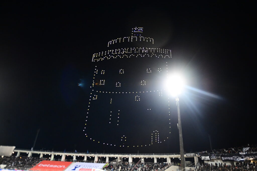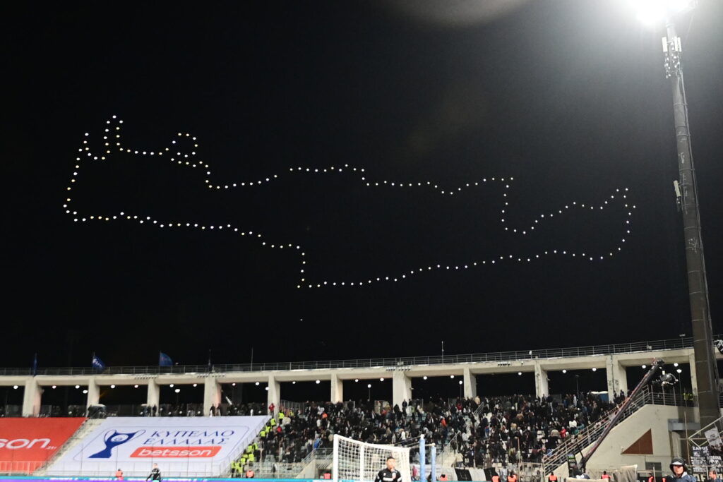 Στην ανάπαυλα του τελικού του Κυπέλλου στο ουρανό του Βόλου σχηματίστηκε ένα συγκινητικό drone show