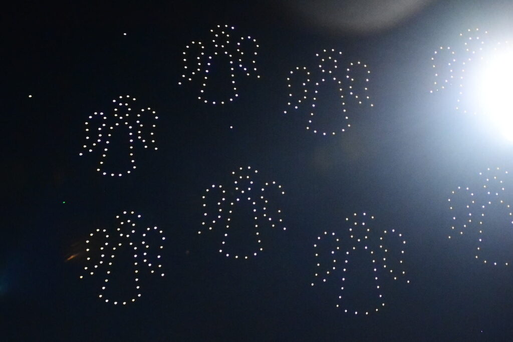 Τότε είδαμε ένα εντυπωσιακό drone show, όπου μεταξύ άλλων σχηματίστηκαν επτά άγγελοι, που παραπέμπουν στα επτά αδικοχαμένα «αετόπουλα».