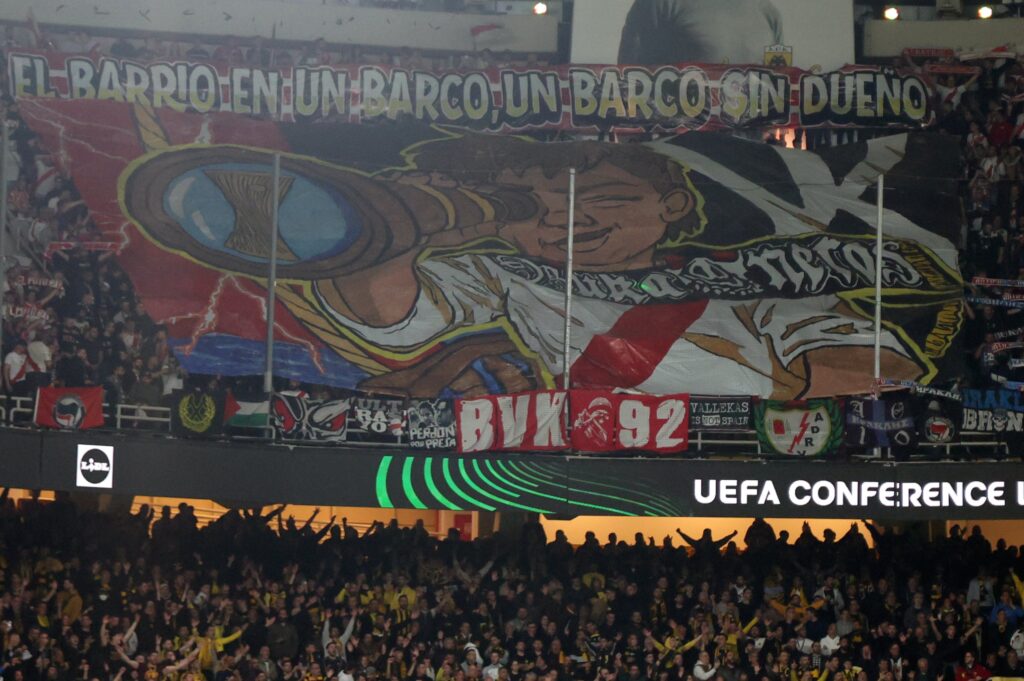 Πιο αναλυτικά, σήκωσαν ένα εντυπωσιακό κορεό με ένα παιδάκι που έβλεπε με τηλεσκόπιο το κύπελλο του Conference League και συνοδευόταν από ένα καράβι που είχε το εξής μήνυμα, «Η γειτονιά σε ένα καράβι, ένα καράβι χωρίς αφεντικό».