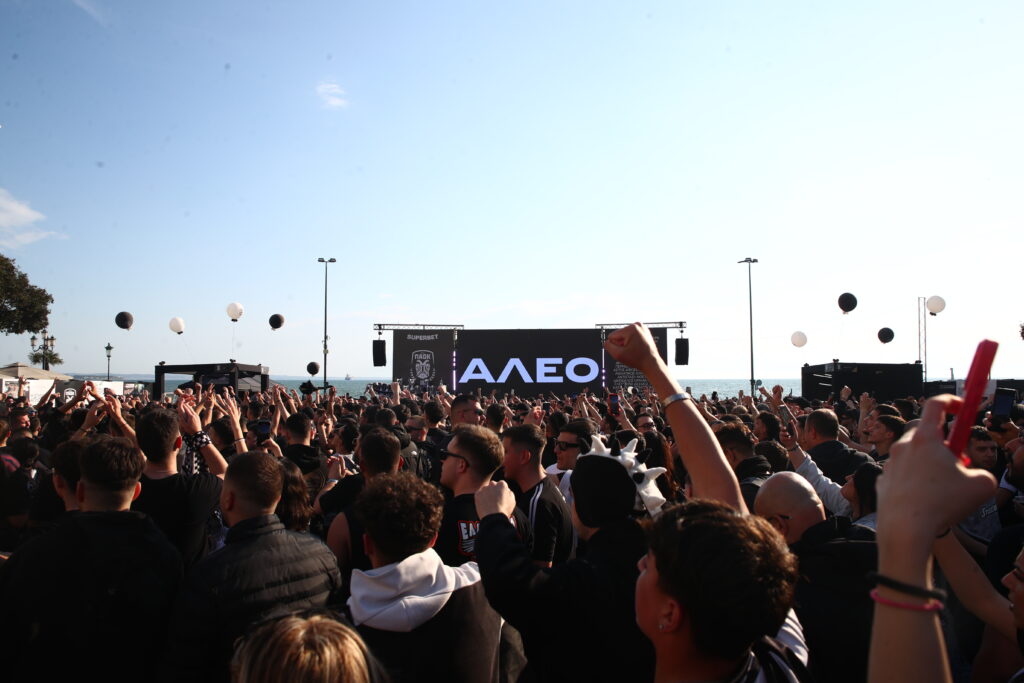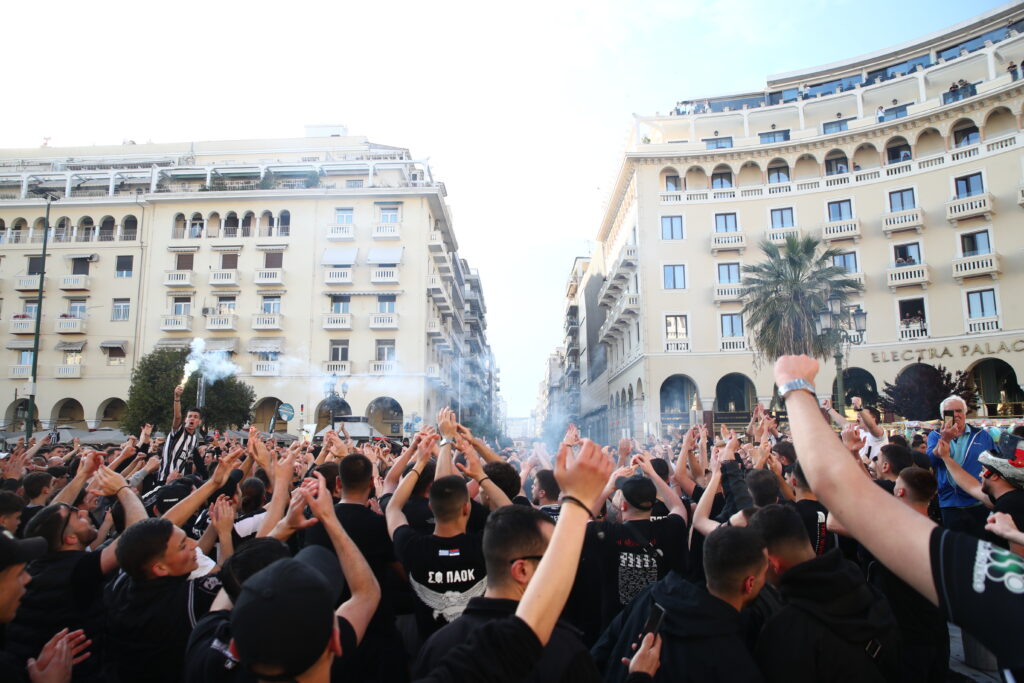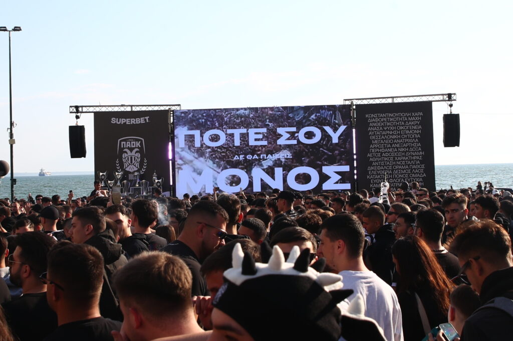 Η συμπλήρωση ενός αιώνα ζωής από τον ΠΑΟΚ μετατράπηκε σε μια ασπρόμαυρη γιορτή δίχως προηγούμενο, με χιλιάδες φιλάθλους να πλημμυρίζουν τη Θεσσαλονίκη και να δημιουργούν εντυπωσιακή ατμόσφαιρα.