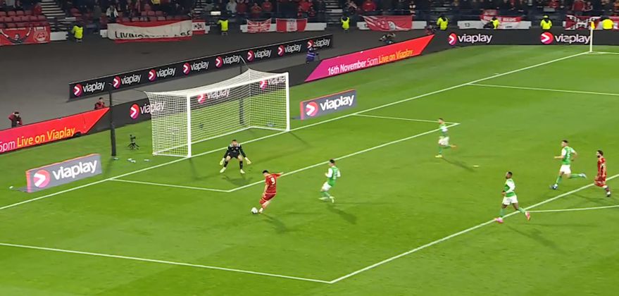 Η Αμπερντίν με δέκα παίκτες και γκολ του Μιόβσκι νίκησε 1-0 τη Χιμπέρνιαν και θ' αντιμετωπίσει στον τελικό του Λιγκ Καπ τον νικητή της αναμέτρησης Χαρτς - Ρέιντζερς.