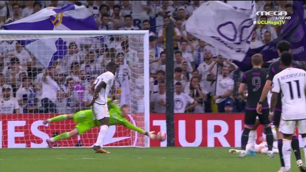 Στο 13' ο Βινίσιους σημάδεψε το δοκάρι για τη Ρεάλ Μαδρίτης και στην επαναφορά ο Ροντρίγκο νικήθηκε από τον Νόιερ.