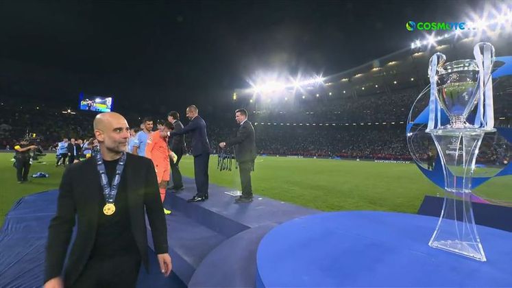Ο Πεπ Γκουαρδιόλα έκλεισε το μάτι στο τρόπαιο του UEFA Champions League, λίγα λεπτά πριν το σηκώσει στον αέρα.