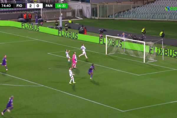 Ο Παναθηναϊκός έφτασε πολύ κοντά να μειώσει σε 2-1 αλλά ο Τετέ κόπηκε την τελευταία στιγμή από τους παίκτες της Φιορεντίνα.