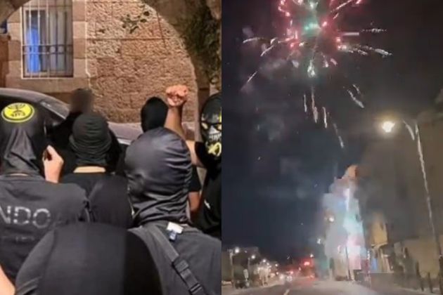 Η στιγμή που οπαδοί της Μπειτάρ εκτοξεύουν πυροτεχνήματα έξω από ξενοδοχείο του ΠΑΟΚ (vid)