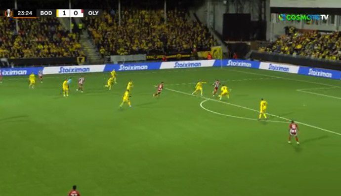 Ο Γιάννης Κωνσταντέλιας πέτυχε ένα υπέροχο γκολ, το οποίο, όμως, δεν μέτρησε, καθώς νωρίτερα είχε περάσει όλη η μπάλα τη γραμμή.