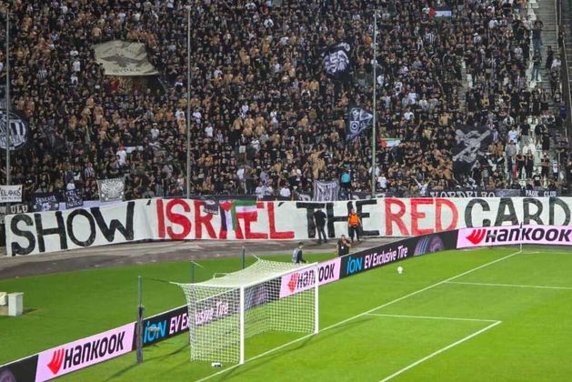 O ΠΑΟΚ υποδέχθηκε την Μακάμπι Τελ Αβίβ και κατά τη διάρκεια του αγώνα οι φίλοι της ομάδας σήκωσαν πανό κατά του Ισραήλ.