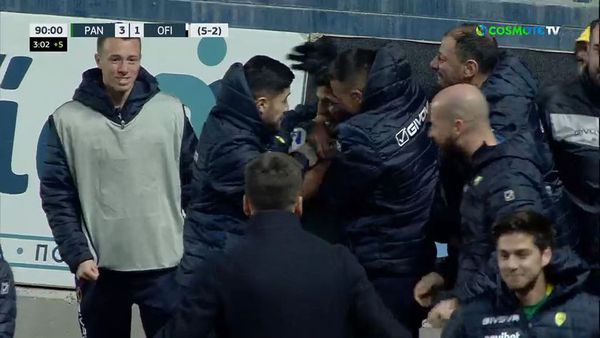 Συγκίνηση στο Πανθεσσαλικό με τον Κάσσο να ισοφαρίζει σε 1-1 στο ματς κόντρα στον Άρη και να πηγαίνει στον πάγκο τις ομάδας να αφιερώσει το γκολ στον Παύλο Κυριακίδη.
