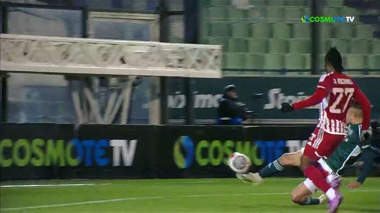 Ο Μασούρας έκανε μια ωραία ενέργεια, έβγαλε τη σέντρα και λίγο πριν μπει στη φάση ο Ρίτσαρντς, ο Κώτσιρας έκανε ένα σωτήριο τάκλιν.