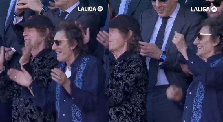 Από κοντά παρακολούθησαν οι Μικ Τζάγκερ και Ρόνι Γουντ το μεγάλο ντέρμπι, Μπαρτσελόνα - Ρεάλ Μαδρίτης, με την κάμερα να τους πιάνει να χορεύουν πριν τη σέντρα ακούγοντας το «Start me up» .