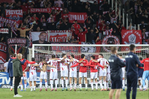 Δείτε το χορό των παικτών του Ολυμπιακού μπροστά στον κόσμο τους, μετά την εκτός έδρας επικράτηση κόντρα στην ΑΕΛ Novibet.