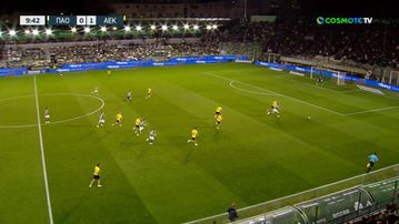 Ο Νορντίν Άμραμπατ σκόραρε για την ΑΕΚ, αλλά το τέρμα ακυρώθηκε γιατί ο Μαροκινός ήταν σε θέση οφσάιντ.