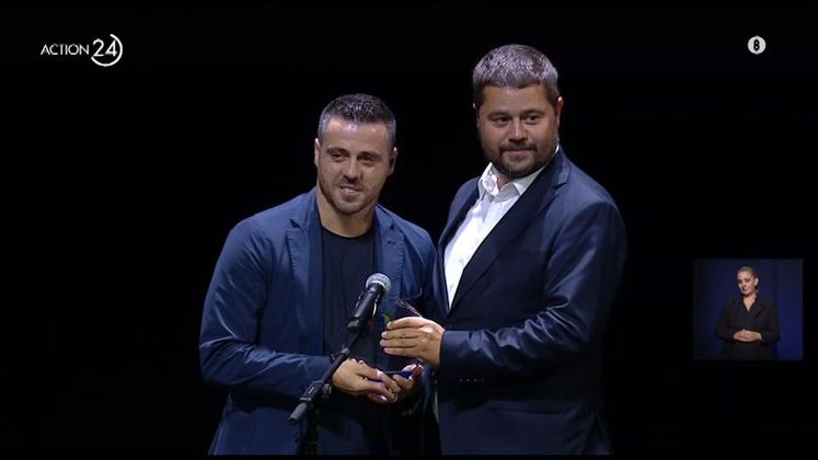 Ο Σωτήρης Νίνης παρέλαβε το βραβείο του από τον Βίκτορ Μουνιόθ, τον προπονητή που τον ανέδειξε στον Παναθηναϊκό.