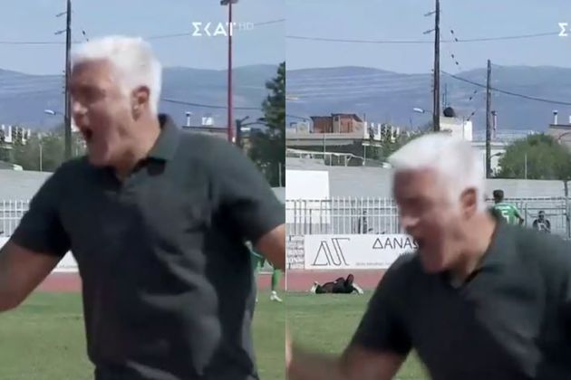 Ο προπονητής της Νέας Σμύρνης πανηγύρισε έξαλλα το γκολ του Κολοβού, που έκανε το 2-0 για την ομάδα του κόντρα στον Παναργειακό.