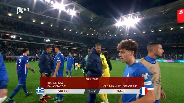 Η Ελλάδα έφτασε στην ισοφάριση κόντρα στη Γαλλία με γκολάρα του Τάσου Μπακασέτα.