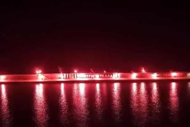 Φαντασμαγορική ατμόσφαιρα στο λιμάνι της Καλαμάτας για την άνοδο της «Μαύρης Θύελλας» (vid)