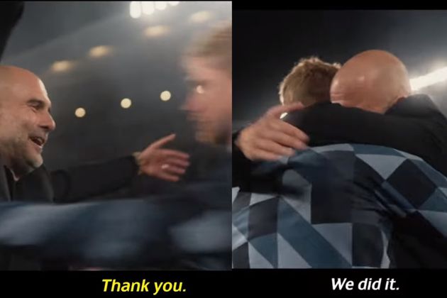 Η Μάντσεστερ Σίτι ανέβασε μια ταινία μικρού μήκους για την κατάκτηση του Champions League, όπου σε ένα σημείο φαίνεται ο Πεπ Γκουαρδιόλα να πέφτει στην αγκαλιά του Ντε Μπρόινε κλαίγοντας και να τον ευχαριστεί.