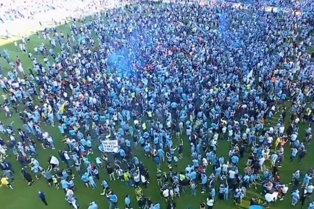 Οι οπαδοί της Μάντσεστερ Σίτι δεν συγκράτησαν τη χαρά τους μετά τη λήξη του αγώνα και μπήκαν μέσα στον αγωνιστικό χώρο για να πανηγυρίσουν την κατάκτηση του πρωταθλήματος.