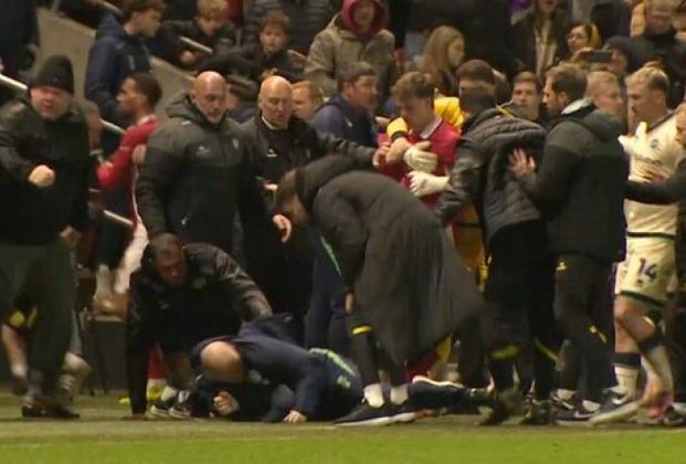 Απίστευτες σκηνές και τρομερή ένταση μετά τη λήξη του Μπρίστολ Σίτι - Μίλγουολ, με παίκτες και σταφ των δύο ομάδων να πιάνονται στα χέρια.