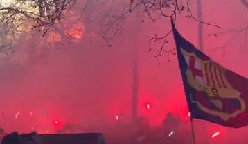 Οπαδοί της Μπαρτσελόνα προετοίμασαν «καυτή» υποδοχή την αποστολή της ομάδας, κατά την άφιξή της στο «Μονζουίκ», ενόψει του αγώνα με τη Νάπολι.