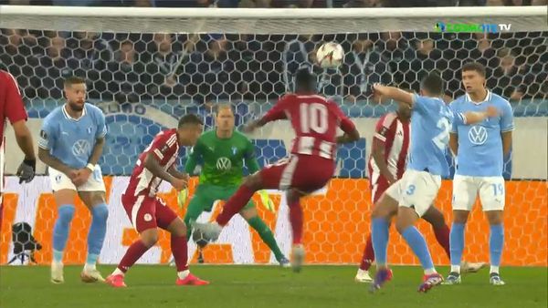 Ο Ολυμπιακός άνοιξε το σκορ κόντρα στην Καλέβ Ταλίν χάρη στο γκολ του Γιουσούφ με κεφαλιά.