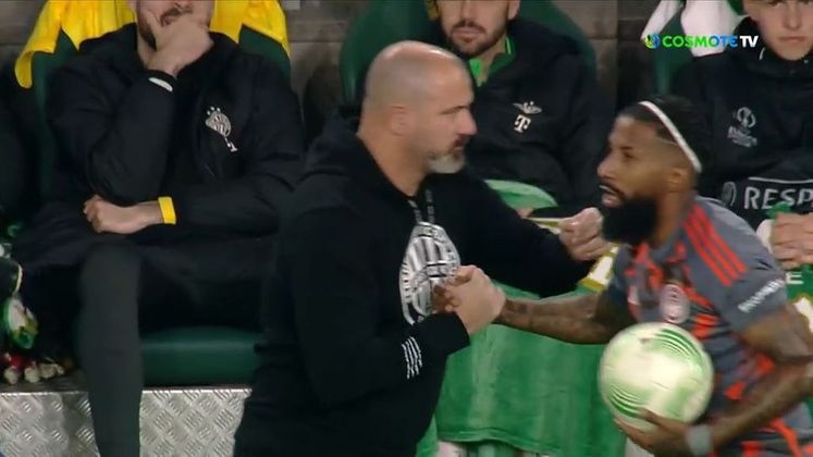 Ο Ντέγιαν Στάνκοβιτς έδωσε το χέρι του στον Ροντινέι την ώρα που ο παίκτης του Ολυμπιακού ετοιμαζόταν να εκτελέσει πλάγιο σε μια όμορφη στιγμή.