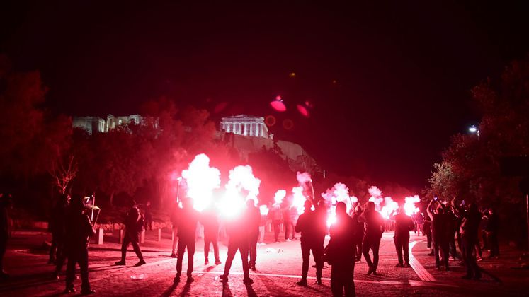 Πολλοί οπαδοί του Ολυμπιακού έχουν ήδη μαζευτεί στον Πειραιά για τον εορτασμό των 100 χρόνων, ενώ αμέσως μετά την αλλαγή της ημέρας θα ανάψουν καπνογόνα.