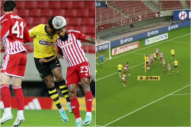 Το άλμα του Λιβάι Γκαρσία έφτασε τα 2,29 μέτρα και με τη δυνατή κεφαλιά που πήρε, έστειλε την μπάλα στα δίχτυα κόντρα στον Ολυμπιακό.