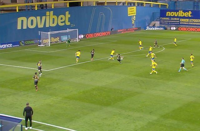 Ο Μανού Γκαρθία με μία νέα... ζωγραφιά έκανε το 2-1 για τον Άρη, αλλά το γκολ ακυρώθηκε για φάουλ στην αρχή της φάσης κάτι που προκάλεσε την οργή στις τάξεις των ανθρώπων της ομάδας της Θεσσαλονίκης.