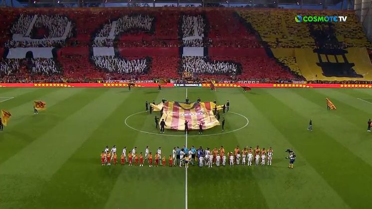 Οι οπαδοί της Λανς ετοίμασαν μια εντυπωσιακή ατμόσφαιρα κατά την είσοδο των δύο ομάδων στον αγωνιστικό χώρο.