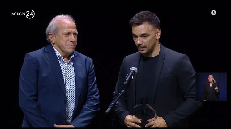Ο Σωτήρης Νίνης παρέλαβε το βραβείο του από τον Βίκτορ Μουνιόθ, τον προπονητή που τον ανέδειξε στον Παναθηναϊκό.