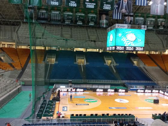 Προστατευτικό δίχτυ μπροστά από τις εξέδρες του ΟΑΚΑ για το Game 2 Παναθηναϊκός - Ολυμπιακός
