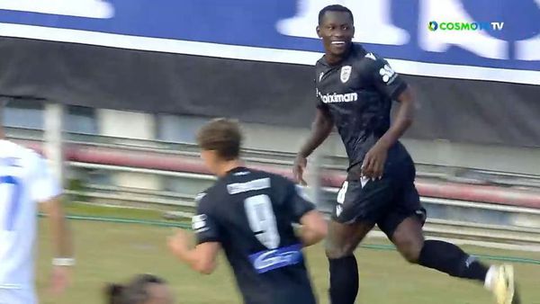 Ο ΠΑΟΚ άνοιξε το σκορ στη Νέα Φιλαδέλφεια με τον Ράχμαν Μπάμπα, ο οποίος εκμεταλλεύτηκε την ασταθή απόκρουση του Στρακόσα και έκανε το 1-0.