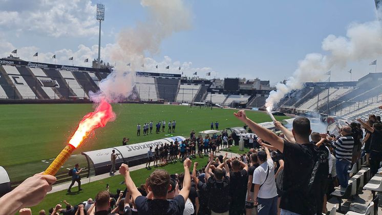 Μετά τη λήξη της προπόνησης, αρκετοί φίλοι του ΠΑΟΚ βρέθηκαν έξω από την Τούμπα με σκοπό να ντοπάρουν ψυχολογικά τους παίκτες του Ράζβαν Λουτσέσκου ενόψει του τελικού με την ΑΕΚ.