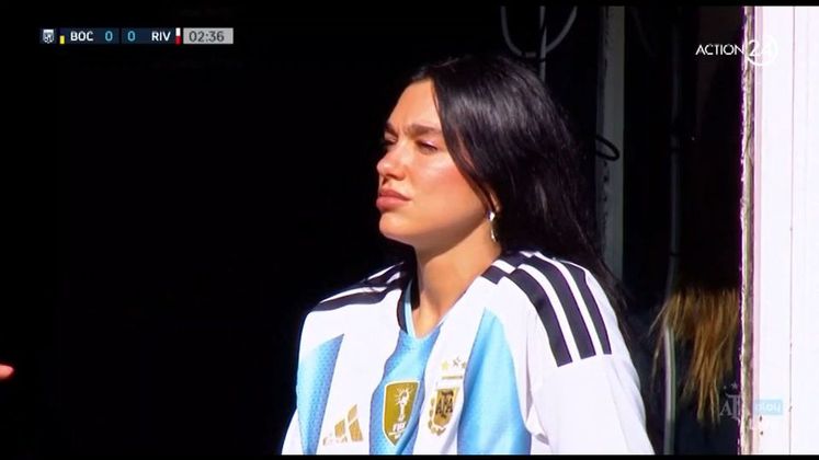 Η Ντούα Λίπα βρίσκεται στο Μπομπονέρα για το Μπόκα - Ρίβερ φορώντας φανέλα της Αργεντινής.