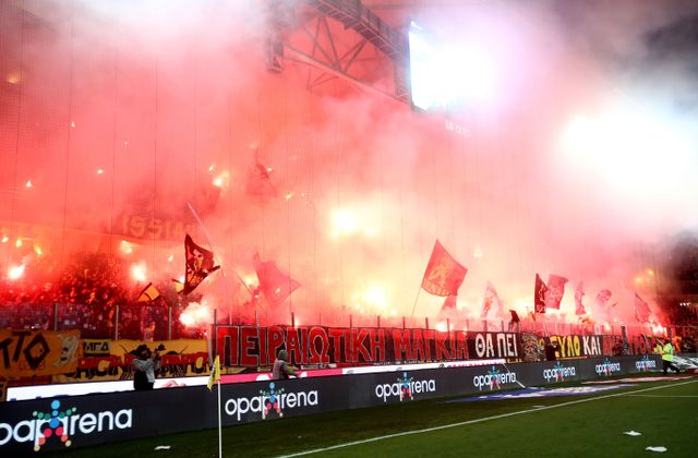 Το ντέρμπι ανάμεσα σε ΑΕΚ και Ολυμπιακό άργησε να ξεκινήσει λόγω των καπνογόνων.