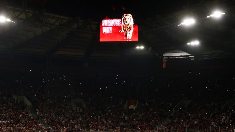 Ένα φαντασμαγορικό σόου υπήρχε στο «Γεώργιος Καραϊσκάκης» πριν από την έναρξη του αγώνα του Ολυμπιακού κόντρα στην ΑΕΚ, αφού στα μάτριξ του γηπέδου εμφανίστηκε ένα λιοντάρι να βρυχάται υπό τους ήχους των Metallica