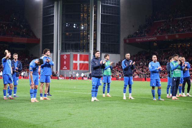Παρά την ήττα από τη Δανία, οι Έλληνες φίλαθλοι που ταξίδεψαν στην Κοπεγχάγη επιβράβευσαν την προσπάθεια των ποδοσφαιριστών του Ιβάν Γιοβάνοβιτς.