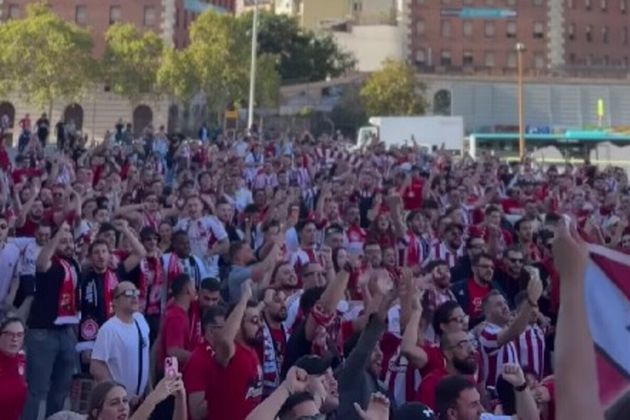 Λίγη ώρα πριν τον αγώνα Μπαρτσελόνα - Ολυμπιακός, οι φίλοι των «ερυθρόλευκων» έστησαν πάρτι στους δρόμους της Βαρκελώνης.