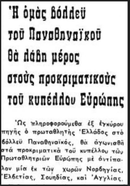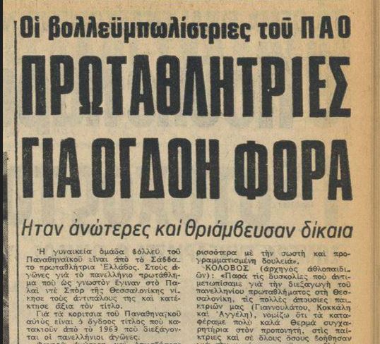 Επιπλέον σε συνέντευξη της βολεϊμπολίστριας Σοφίας Παυλάκου το 1974 (10 Ιουλίου) στην Α.Η. αναφέρεται ότι ο Παναθηναϊκός έχει κατακτήσει πέντε συνεχόμενα πρωταθλήματα.