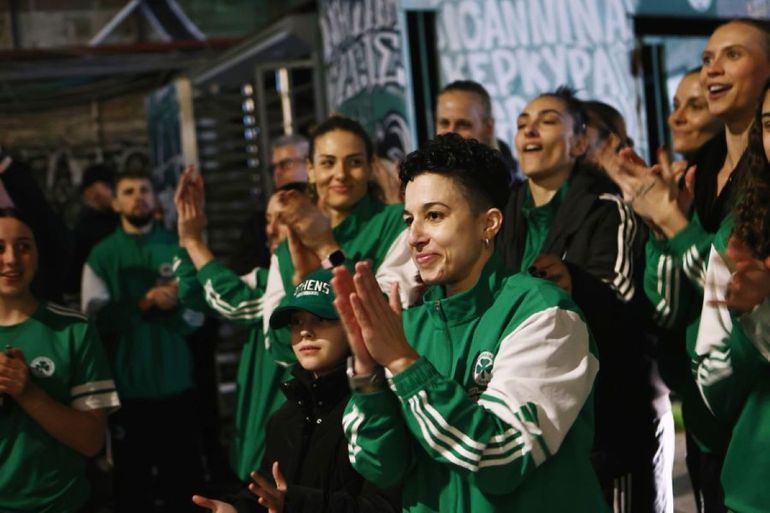 Η ομάδα των γυναικών αμέσως μετά την νίκη στο κλειστό της Νέας Σμύρνης, κατευθύνθηκε στη Λεωφόρο, όπου και γνώρισε την αποθέωση έξω από το γήπεδο του ποδοσφαιρικού Παναθηναϊκού.