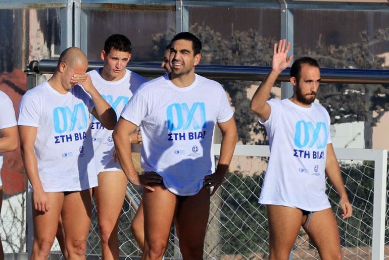Οι ομάδες του πρωταθλήματος πόλο ανδρών, εμφανίστηκαν με μπλούζες με το μήνυμα «ΟΧΙ ΣΤΗ ΒΙΑ» πριν την έναρξη των αναμετρήσεων.