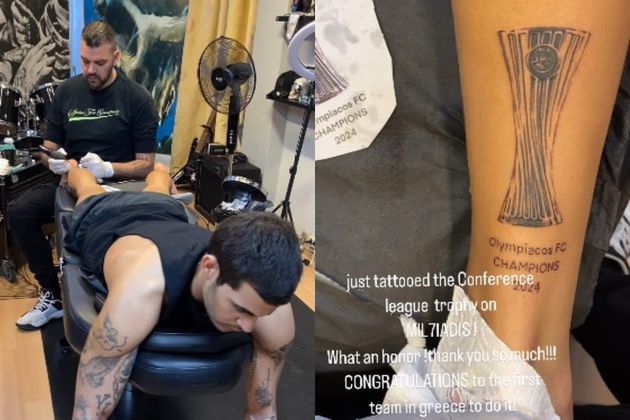 Ο γιος του Βαγγέλη Μαρινάκη έκανε τατουάζ την κούπα του Conference League που πήρε ο Ολυμπιακός (vid)